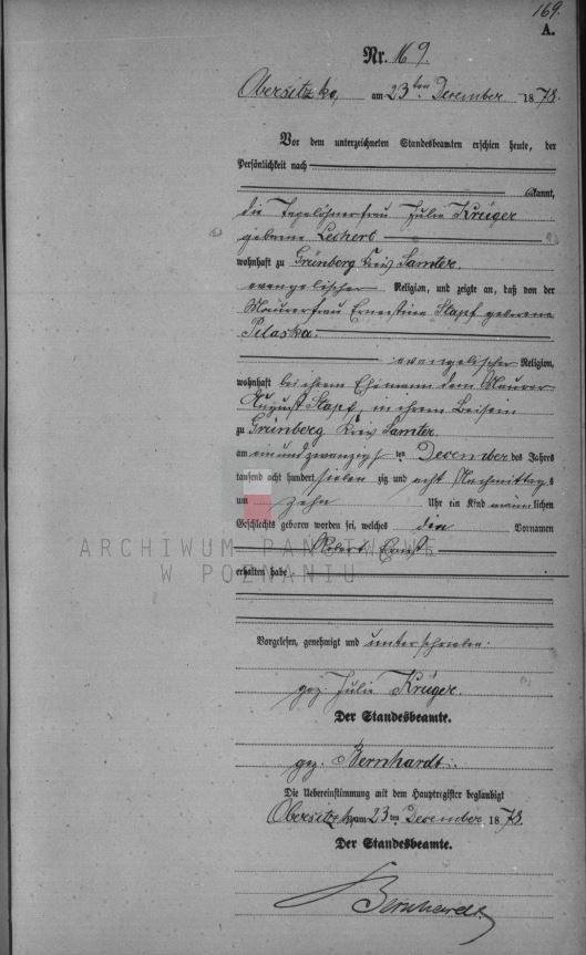 Standesamt Obersitzko 1878/169