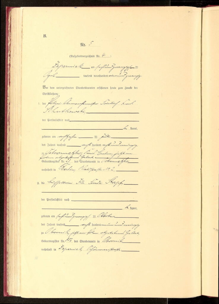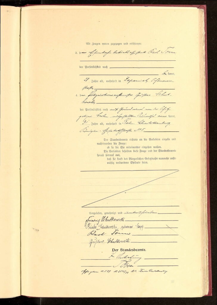Heirat Friedrich Carl Schutkowski / Ida Frieda Stapf (26.04.1924)