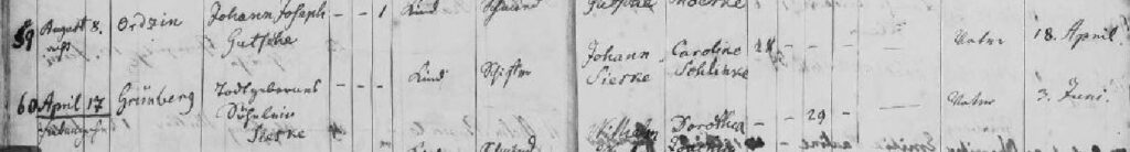 Familie Johann Sieske (verh. Schlinke) Todgeburt Sieske/Schlinke (17.04.1850) admin 02.08.2023 Am 17.04.1850 wurde in Grünberg ein Söhnlein des Johann Sieske und der Caroline (geb. Schlinke) todgeboren. Continue Reading Previous: Geburt Carl August Sieske (13.02.1852)Next: Geburt Hermann Albert Sieske (01.12.1848) Related Stories Heirat Johann Sieske / Caroline Schlinke (1848) Familie Johann Sieske (verh. Schlinke) Heirat Johann Sieske / Caroline Schlinke (1848) 02.08.2023 Geburt Hermann Albert Sieske (01.12.1848) Familie Johann Sieske (verh. Schlinke) Geburt Hermann Albert Sieske (01.12.1848) 02.08.2023 Geburt Carl August Sieske (13.02.1852) Familie Johann Sieske (verh. Schlinke) Geburt Carl August Sieske (13.02.1852) 02.08.2023